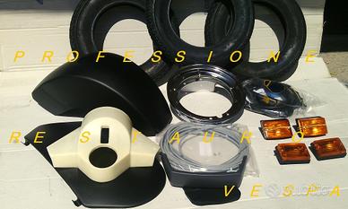 RIF. OR155PKS Pezzi di ricambio di carrozzeria per Piaggio Vespa PK50 PK50S PK125 S telaio vmx1t vmx2t 125S elestart P125ETS VMS1T ETS Kit restauro accessori da 155Euro (FOTO 2 ) : Faro anteriore Coppia leve + 2 viti Manopole Scritta ant. VESPA Scritta laterale PK50 -oppure - PK50S - PK125 Targhetta Piaggio sul nasello Stemma Piaggio esagonale Coprimolleggio ruota ant. 2 tappi mozzo ruota Gommini per: pedale freno asta mix 10 tamponcini dei cofani laterali Scarpe del cavalletto Profilo Guarniz. bauletto Strisce pedana battitacco complete Tappeto grande pedana 4 vetrini frecce Faro stop completo Codone salva scocca post. Paraspruzzi posteriore originale Prezzo: Euro 155 A PARTE ALTRE PARTI COI PREZZI E = EURO Fili nuovi + guaine E20 3 gomme nere 3.00-10 E58; fascia bianca E96 3 Camera d'aria E15 Cerchio ruota E16 Bordoscudo bordino alluminio originale E29; nero E24 Sella corta o lunga con serratura E92 Serratura Bloccasterzo + boccola E15 Serratura per Bauletto E16, per sportello laterale E14 Sportello laterale dx O sx E28 Specchio cromato + staffa E18 Ammortizzatore post. E35; ant. E29; Pulsante luci E27 Deviatore Frecce E24 Commutatore Quadro ON - OFF E24 Cavalletto cromato E22 Coperchio manubrio E24 Tappo Manubrio E3 Ganasce Ant. + Post. E19 Parafango E45 Pedana in Ferro E96 Nasello portaclaxon E28 Contachilometri + filo + ingranaggio E85 4 frecce arancioni complete E58 Ralle sterzo E25 pedale freno E20 Vano oggetti sottosella E10 Pedivella motore E20 Kit Modifica 105cc (foto 24) E185 Marmitta originale E45; Proma E69 Cuffia cilindro E9 Copriventola cromo E14 Cuscinetti albero motore + paraoli V5X1M V5X2M E25 Guarnizioni motore E7 Crocera E36 gruppo termico modifica 75 90 105cc E75 Albero motore E58 Dischi frizione E14 Impianto elettrico E46 Staffa ruota di scorta E14 Serbatoio E69 Rubinetto benzina E10 CONTRASSEGNO