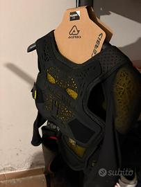Le maniche sono dotate di spallacci imbottiti che migliorano la stabilità. Il sistema di regolazioni elastiche laterali e la fascia in vita permettono un fitting personalizzato e sicuro, compatibile anche con neck-brace e tutori cervicali.
