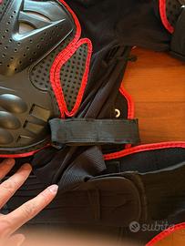 pettorina da moto sia stradale sia off road, completa di paraschiena, protezioni su petto, spalle e gomiti. articolo usato poco d in condizioni ottime