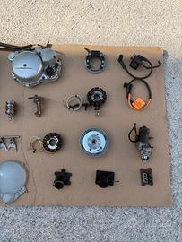 1 carter 2ª serie lavorati- 60 2 carter frizione con miscelatore e cablaggi- 20 3 statore pvl polini con cablaggio da fare- 40 4 bobina pvl 13º nuova universale- VENDUTO 5 cambio 2ª serie- VENDUTO 6 frizione completa di ingranaggi- 45 7 desmo- 20 8 contralbero- VENDUTO 9 statore 12 poli- VENDUTO 10 bobina motorforce ad alta tensione universale- VENDUTO 11 astina e forchette cambio- 20 12 statore 12 poli senza basetta- 20 13 volano 12 poli- VENDUTO 14 motorino d’avviamento perfettamente funzionante- 10 15 meccanismo leva del cambio- 30 16 gruppo termico dr 70- VENDUTO 17 copri carter accensione- 10 18 collettore per 16/21- VENDUTO 19 collettore 26/30- VENDUTO 20 pacco lamellare lavorato- VENDUTO Le cose universali sono compatibili con altri motori come piaggio, minarelli, derbi ecc (tpr 86, top, krm, yasuni, beta, fantic, malossi mhr, scarico, moto, scooter, giannelli, mvt, selettra, tommaselli)