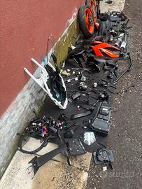 Freno posteriore freno anteriore, Forcelle Piastre di sterzo, plastiche, carene parafango, faro contachilometri, impianto elettrico, centralina, serbatoio motore carburatore, accensione Statore telaietto, Leveraggio ammortizzatore Forcellone, pedane pedane, conducente, centralina abs