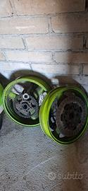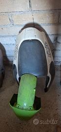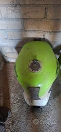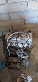 Forcella ,carburatori,aspirazione,serbatoio cerchi ,dischi,radiatore ,collettori, 2 scarichi, sellino,pinze anteriori con pompa e manopola,pinza posteriore con pedalino e pompa , centralina ,motore, praticamente tutto tranne il telaio