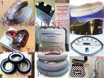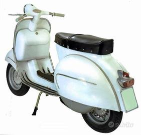 Offerta ricambi nuovi di carrozzeria per restauro vespa GS 160 gransport 1961 1962 1963 1964 Ricambi del kit restauro da 250 EURO (FOTO 1 e 2) Faro in vetro anteriore Ghiera faro cromata Manopole grigie Piaggio Leve a punta cromate freno/frizione + 2 viti Cresta parafango Scritta anteriore Vespa GS Stemma Piaggio Coprioscillante ruota ant. Salvabordo in acciaio originale Gommini per: freno,pedivella, leva miscela, gommini per tubo benzina e passacavi. Guarnizione claxon Guarnizioni serbatoio Guarniz. cofani laterali Guarniz. cassettino Scarpe cavalletto Strisce pedane complete Tappetino centrale + listelli Tappeto grande pedane 2 Tappi tamburi Vetrino rosso stop Cornice targa cromata IL COSTO DI QUESTO KIT GS160 è 250 EURO A parte dal kit altri accessori coi prezzi di fianco: E = EURO Parafango 109 Serie guaina e cavi comandi nuovi E20 Serratura bauletto portaoggetti E16 Bloccasterzo E55 Protezione copri ruota di scorta E49 Pedana in ferro E109 Fanale Stop E48; originale siem E89 Sella completa Aquila Continentale nera o grigia E179; riprodotta E86 3 copertoni 3.50 - 10 neri E58; fascia bianca E90 3 camera d'aria E15 Cerchioni 4.00 - 10 E39 Serie fregi cofani e parafango (4 pezzi) E43 Cavalletto E18 Etichette rodaggio + usare mix 5% E13 Ammortizzatore ant. E50; post. completo E38 Ganasce freno ant. E16; post. E14 Marmitta E85 Contachilometri conta/km E89 Filo conta/km E7;rocchetto E5 Clacson originali E59 Leva Messa moto E37 Soffietto Carburatore E25 Guarniz. mot. E14 Set paraoli motore E15 Coppia ralle sterzo complete E25 Complessivo oscillante ruota ant. E26 Pulsante stop E6 Specchietto E26 Impianto elettrico E39 Batteria 6V E39 Devioluci originali E49 Quadro manubrio E79 Rubinetto benzina + asta E18 Pedale freno E15 paraspruzzi post. E9 Coppia ganci cofani E18 Bobina esterna E55 CONTRASSEGNO ACCETTATO