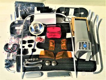 RIF. OR205PXE Offerta KIT Accessori nuovi di Carrozzeria per restauro VESPA PX125 PX150 PX200 dal 78 al 89 ARCOBALENO P X E EURO 205 (FOTO 1 e 2 ) : -> Fanale anteriore Manopole nere Piaggio Leve freno frizione +2 viti Scritta VESPA ant Stemma + Targhetta Piaggio Nasello ( 1 serie o Arcobaleno) Coperchio Coprimolleggio Cresta parafango Salvabordo originale Gommini per: freno , leva avviamento, leva mix, raccordo tubo benzina e passacavi Guarnizione serbatoio Guarnizioni nere scocche laterali Guarniz bauletto Scarpe cavalletto Strisce pedane battitacco complete Tappetino centrale Tappeto grande 2 Tappi tamburo 4 vetrini frecce Fanalino Stop completo Cornice targa cromata COSTO 205 EURO A PARTE ALTRI RICAMBI COI PREZZI: E = Euro Serie fili + guaine E20 3 gomme 3.50-10 neri E65; fascia bianca E92 3 Camera d'aria E18 Cerchio ruota E16 Sella originale E109 Coppia portapacchi E126 Paraschizzi post. E14 Copriruota scorta E12 Serratura Bloccasterzo E10 per Bauletto E14 Specchio cromo o nero E18 Ammortizzatore posteriore originali E35; ant. E38 Impianto elettrico originale E45 Interruttore luci + commutatore frecce E34 Quadro on/off sul manubrio E18 Contachilometri 1° serie E45 Cavalletto E22 Coperchio manubrio E28 2 Spie quadro E10 Pedana in ferro E79 Scudo intero originale E169 Ganasce Ant. + Post. E18 Parafango anteriore E39 Bauletto portaoggetti E79 Cofani laterali E179 4 frecce bianche o arancioni complete E49 Scritta laterale E7 Cuscinetti di sterzo E25 Pedale freno E22 2 Ganci cofani esterni E16 Gruppo termico originale 150cc P125X P150X Eur 129; 177 DR Euro 165; 200cc originale per PX200E P200E Euro 169; 210cc polini Euro 249 Marmitta per px125e px150e E46; per p200e E56 Cuscinetti albero mot. + PARAOLI E32 Guarnizioni motore E8 Magnete statore E56 vnx1m vlx1m Coprivolano E22 Rubinetto benzina + asta E16 Numero telaio vnx1t vlx1t vsx1t vnx2t vlx2t vsx1t vsx2t vnx2m vlx2m vsx1m vsx2m CONTRASSEGNO