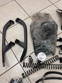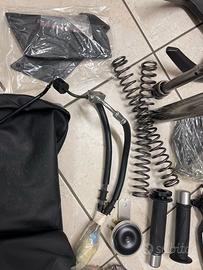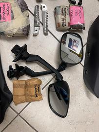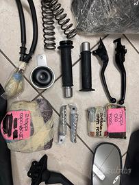 Causa inutilizzo vendo pezzi di ricambio vari originali e nuovi del Tmax 2012: coppia di pedane in gomma, coppia di maniglioni posteriori, codino, copri-chiave, coppia leve freni, coppia manopole, parafanghino anteriore, coppia tappi olio, coppia pedaline posteriori, coppia specchietti, coppia tappi specchietti (per carena), clacson, coppia tappi copri-variatore, set completo di molle e cartucce per ammortizzatori anteriori, tubi impianto frenante anteriore, disco e pastiglie freno posteriore, copertura sella.