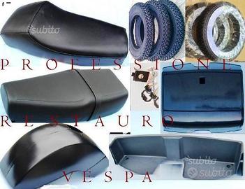 RIF. OR155PKS Ricambi di carrozzeria per Piaggio Vespa PK50 PK50S PK125 S telaio vmx1t vmx2t 125S elestart P125ETS VMS1T ETS Kit restauro accessori da 155Euro (FOTO 1 ) : Faro anteriore Coppia leve + 2 viti Manopole Scritta ant. VESPA Scritta laterale PK50 -oppure - PK50S - PK125 Targhetta Piaggio sul nasello Stemma Piaggio esagonale Coprimolleggio ruota ant. 2 tappi mozzo ruota Gommini per: pedale freno asta mix 10 tamponcini dei cofani laterali Scarpe del cavalletto Profilo Guarniz. bauletto Strisce pedana battitacco complete Tappeto grande pedana 4 vetrini frecce Faro stop completo Codone salva scocca post. Paraspruzzi posteriore originale Prezzo: 155 Euro A PARTE ALTRE PARTI E ACCESSORI COI PREZZI E = EURO Fili nuovi + guaine E20 3 gomme nere 3.00-10 E68; fascia bianca E95 3 Camera d'aria E18 Cerchio ruota E16 Bordoscudo bordino alluminio originale E29; nero E24 Sella corta o lunga Piaggio con serratura E108 Serratura Bloccasterzo + boccola E15 Serratura per Bauletto E16, per sportello laterale E14 Sportello laterale dx O sx E28 Specchio cromato + staffa E18 Ammortizzatore post. E35; ant. E29; Pulsante luci E29 Deviatore Frecce E26 Commutatore Quadro ON - OFF E24 Cavalletto cromato E22 Coperchio manubrio E24 Tappo Manubrio E3 Ganasce Ant. + Post. E19 Parafango in metallo E48 Pedana in Ferro E96 Nasello portaclaxon E32 Coperchio del manubrio E26 Sportello del bauletto E42 Contachilometri + filo + ingranaggio E85 4 frecce arancioni complete E58 Ralle sterzo E25 pedale freno E20 Vano oggetti sottosella E10 Pedivella motore E22 Marmitta originale E45; Proma E76 Cuffia cilindro E9 Copriventola cromo E14 Cuscinetti albero motore + paraoli V5X1M V5X2M E25 Guarnizioni motore E7 Crocera E39 gruppo termico modifica 75 90 105 cc E79 Albero motore rinforzato E69 Dischi frizione E14 Impianto elettrico E46 Staffa ruota di scorta E14 Serbatoio E69 Rubinetto benzina E10 CONTRASSEGNO