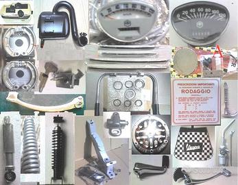 Ricambi di carrozzeria e motore per restauro Vespa - 180 200 RALLY vsd1t vse1t - 125GTR Gran Turismo vnl2t - 150 SPRINT Veloce vlb1t - 125 TS vnl3t Kit 235 Euro (FOTO 2) nel dettaglio: Faro anteriore vetro Ghiera faro Manopole Piaggio Leve freno/frizione + 2 viti Cresta parafango 2 Stemmi esagonali Piaggio (grande e piccolo) Bordoscudo originale Coprioscillante Gommini per: freno pedivella leva mix gommino tubo benzina e passacavi Guarnizione claxon Guarnizione serbatoio guarnizioni scocche laterali Scarpe cavalletto Soffietto carburatore Strisce battitacco complete Tappetino centrale + listelli Tappeto grande per pedane 2 Tappi tamburi Fanale Stop completo Cornice targa cromata PREZZO 235 EURO A PARTE ALTRI ACCESSORI e PARTI DI RICAMBIO CON I PREZZI DI FIANCO: E = EURO Serie guaine + fili nuovi E20 Contachilometri E75 Filo conta/km E6; ingranaggio ruota E5 Spia gemma manubrio E16 Sella lunga Aquila o Piaggio E109; X Rally E129; riprodotta E85 Copriruota scorta E32 Tutte le scritte ant. e post. Cavalletto E18; staffe + molla E7 Impianto elettrico or E32 Serratura Bloccasterzo E10; portaoggetti E14 Cerchio 3.50-10 E16 Modanature per GTr (4pz) E32 Etichette rodaggio + usare mix 2% E10 commutatore luci originali E24 Specchietto SX E18 Parafango E37 Bauletto portaoggetti E119 3 Gomme 3.50/10 nere E58; spalla bianca E90 Ammortizzatore ant. E28; post. compl. E35 Pedana E89 Scudo intero E179 Coppia cofani E209 Serbatoio E69 Ganasce Ant. E16; Post. E10 Marmitta per Sprintveloce gran turismo TS E56; per 200 Rally E65 Claxon E32 Asta ruota scorta E20 Gruppo termico GT R, SPRINT, TS E129; rally E145 Cuscinetti albero MOT. E29 Leva avviamento Sprint E25; Rally E37 Ralle manubrio forcella E25 Guarniz. motore vnl2m vlb1m E7; vnl3m vse1m vsd1m E9 Paraoli originali + or E14 Pulsante stop E6 Rubinetto benzina + asta E18 Forcella completa E225 CONTRASSEGNO