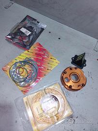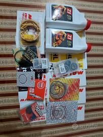 VENDO PIAGGIO/MINARELLI . SOLO QUELLO ELENCATO. PIAGGIO: -Carter braccio corto derivanti da zip SP mk2 tamburo 110, barenati, raccordati con impallinatura per RT 70cc 50€ -Over range malossi mod. vecchio completa con ventolino malossi nuovo e guarnizioni correttori nuove, rulli 4,7g cinghia Malossi al 70% 160€ -Frizione E campana Malossi furia rossa forata e ventilata 80€ -ingranaggi primari malossi 16/37 mk2 30€ -ingranaggi secondari polini 15/39 mk2 30€ -Ganasce posteriori malossi cup sintetizzate NUOVE 110mm 20€ -rialzo 4 fori cromato 20€ -rialzo 2 fori nero 10€ -semicarter avviamento con ingranaggi e pedalina per braccio corto zip fr/mk1 20€ -semicarter avviamento con ingranaggi e padalina per braccio corto mk2 con cuscinetto 30€ -blocco quartz piaggio braccio corto LC tamburo 100mm con relativo cerchio, ingranaggi completi polini, albero STD, cilindro MHR replica 6t grippato 150€ -carter mk2 piaggio braccio corto LC tamburo 110mm ingranaggi e albero STD 80€ VARIE: -comando gas rapido tommaselli formula nuovo senza manopole 35€ -termometro GD Tech completo con bulbo 30€ -termometro koso nuovo 15€ -filtro Malossi x ciao/ carburatori piccoli NUOVO 10€ -comando aria manuale POLINI 1,5mt NUOVO 20€ -comando gas rapido DOMINO ad uscita cavo dritta NUOVO con manopole 35€ -ingranaggi secondari Malossi 13/42 Minarelli oriz/vert 30€ -batteria elektra nuovacompleta