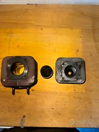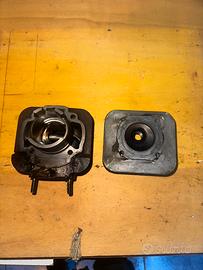Vendo gruppo termico 50 (bifascia in ghisa originale) completo di cilindro, testata, pistone con fasce, 2 seeger e spinotto, smontato da zip del 1992 ma adattato a tutti gli scooter con blocco piaggio 2t raffreddato ad aria. Pistone con circa 11.000km, consiglierei di cambiarlo ma si potrebbe usare cosi (fino a due giorni fa veniva usato regolarmente senza problemi). Cilindro messo bene internamente. Vendo per passaggio a 70cc. Possibilità di spedizione con TuttoSubito o ritiro a mano presso Pescara e dintorni.