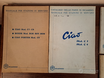 Manuali per stazioni di servizio Piaggio Ciao, Boxer, Bravo,Porter e manuali uso e manutenzione Ciao...