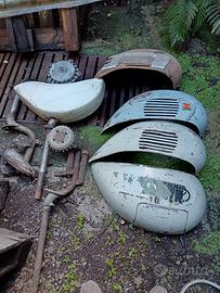 Ricambi Piaggio originali dell'epoca per Vespa. Vendita in blocco di forcelle, parafanghi e pance laterali per modelli diversi anni 50-70.