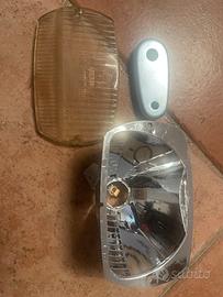 Targhette vespa e PX 125 nuove e con imballo originale Piaggio . Stemmi piaggio un po usurati come da foto . Faro vespa 50 special originale usurato . Spedizione compresa per intero lotto .