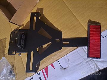 -portatarga piastre nuovo mai usato per cambio progetto colore nero completo di luce targa led e catarifrangente , supporto universale regolabile con diversi attacchi ,vedi foto , no perdite di tempo , ha l' alloggiamento per le freccie, ottimo per honda, kawasaki, yamaha, moto e scooter. Molto bello e funzionale.