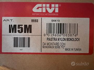 Vendo come da titolo piastra MONOLOCK GIVI. Attacchi universali per moto e scooter. Mai utilizzata, dispone del libretto di istruzioni per il montaggio ed è dotato di tutte le viti e staffe necessarie.
