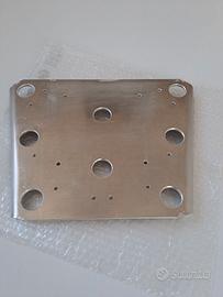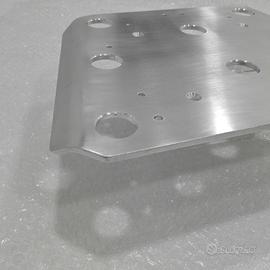 Nuova, piastra porta bauletto in alluminio, forata, tagliata al laser e piegata. Predisposta con foratura a misura per attacchi GIVI/KAPPA Monokey System (aggancio nasello/funghetti/gommini antivibrazioni). La piastra è lunga cm. 27; larga cm. 32 nella parte verso la sella e cm. 22 nella parte posteriore. E' stata realizzata un po' più grande di quella proposta da GIVI/kappa per avere una base d'appoggio anche per borsa morbida. Possibilità di fare altri fori per adattarla a qualsiasi portapacchi.