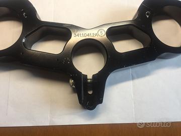 Bellissima piastra di sterzo in ergal originale, nera anodizzata della 999 R Xerox, replica della SBK di Baylis per il modiale vinto del 2006, sostituitami ancora nuova dalla Ducati per un leggero difetto superficiale bene evidenziato sulla vite di bloccaggio. I due buchini che si vedono sono della piastrina d'argento numerata, trasferita sulla nuova piastra. Non so se indicarla come oggetto da collezione visto che ne sono state prodotte pochissime o come ricambio da utilizzare. Per ritiro a mano a verona , o piu la spedizione con pacco postale. Pagamento con bonifico bancario.