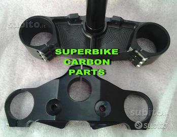 Produciamo piastre di sterzo speciali per qualsiasi moto, anche per prototipi o realizzazioni special. PRESENTIAMO PIASTRE DI STERZO SPECIALI CNC PER DUCATI SPORT CLASSIC E PAUL SMART. Il kit piastre è costituito da piastra di sterzo inferiore con asse canotto e piastra di sterzo superiore. Per il monataggio si utilizzano boccole e cuscinetti originali. Sulla piastra di sterzo supoeriore è presente l'alloggio per blocco accensione ma possiamo anche non farlo se desiderate. Possiamo realizzare cave di alleggerimento passanti sia sulla piastra di sterzo superiore che inferiore. Il kit piastre si monta sulle forcelle originali plug & play con la moto stradale senza alcuna modifica. Le piastre sono disponibili anche per forcelle ohlins o altra marca con kit di montaggio dedicato. Un prodotto rivoluzionario per efficacia, risorse tecniche e costo contenuto. Possibilità di scegliere qualsiasi colore per l'anodizzazione.Le piastre di sterzo sono progettate appositamente per migliorare il feeling con l'avantreno eliminando il chattering rendendo la moto piu' stabile in inserimento curva e percorrenza. La lega speciale utilizzata (testata in pista nei principali campionati internazionali e non come fanno quasi tutti gli altri produttori senza know how sui campi gara!!) E' studiata appositamente per assorbire le sollecitazioni e permettere alle spospensioni di lavorare molto meglio. Off set come sulle forcelle standar, oppure off set regolabile con boccole eccentriche.