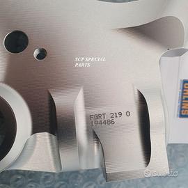 PIEDINI RADIALI ORIGINALI OHLINS RICAVATI DAL PIENO SPECIFICI PER FORCELLA OHLINS NIX 30 CODICE FGRT 219 PER R1 2015 - 2024 SMONTATI DI FORCELLA NUOVA POSSIAMO ANODIZZARLI DI QUALSIASI COLORE
