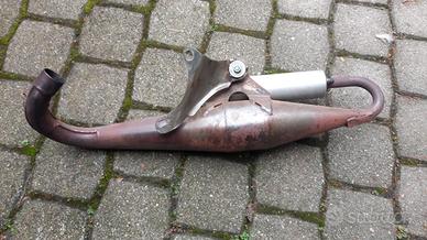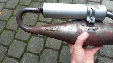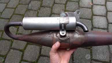 Marmitta espansione Pinasco Power Sound per motori Piaggio Aprilia. Marmitta usata, rimessa a nuovo con vernice trasparente alte temperature e lasciata ferma un anno. Ho anche l'attacco al cilindro non presente in foto ma non le molle