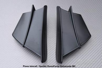 AVDB l'azienda specializzata nella vendita di accessori per la tua moto, ottimo rapporto qualità-prezzo e ottimo servizio post-vendita. L'azienda che fa per la tua moto! Piccoli prezzi e grandi accessori. Coppia di alette DownForce laterale / Spoiler (dette anche "winglet"), Universale per adattarsi Fin dalle sue prime apparizioni in Moto GP nel 2015, in particolare su Ducati, tutti i team più grandi hanno adottato le alette laterali" per le loro proprietà aerodinamiche e per i significativi miglioramenti che apporta in termini di prestazioni. Per i patiti di pista, gli appassionati di Moto GP o semplicemente per i motociclisti che vogliono dare alle loro moto un aspetto più “racing”, queste poche righe dovrebbero bastare per convincervi del valore di aggiungere queste pinne alla tua bella ! Sono pronti per l'installazione sulla parte anteriore della tua moto, accanto ai fari. Queste pinne hanno soprattutto uno scopo estetico e, sebbene possano portare un po 'più di aerodinamica alla tua bella, non sono destinate ad aumentarne le prestazioni allo stesso modo dei modelli montati sulle moto GP. Ma, sarai l'unico a saperlo. Gli altri motociclisti vedranno soprattutto una moto equipaggiata come le più grandi e pronta a strappare l'asfalto alla minima accelerazione ! Per maggiori informazioni contattaci su whatsapp o via mail saremo lieti di rispondere alle tue domande. Motociclisticamente.