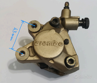 Vendo pinza freno originale Brembo Serie Oro a 2 pistoncini contrapposti, usata ma in buone condizioni strutturali. La pinza si presenta nella classica colorazione oro ed è completa di vite banjo per il tubo freno e valvola di spurgo (come da foto). Dettagli: Marca: Brembo Tipo: Pinza fissa a 2 pistoncini. Applicazione tipica: Molto diffusa come freno posteriore su Ducati (Monster, SS, Multistrada), Aprilia (RSV, Tuono, Falco), Moto Guzzi, Cagiva e KTM, o come anteriore su scooter e piccole moto. Condizioni: Usata, smontata funzionante. Necessita di una normale pulizia esterna. Essendo un componente di sicurezza usato, consiglio sempre di controllare le guarnizioni/gommini prima del montaggio. Interasse fori: 43mm. Ottima per restauro moto, ricambio originale o per progetti custom/cafè racer. Si vende il materiale con la formula: “Visto e piaciuto”, con esclusione di ogni forma di garanzia. In ogni caso, mi rendo disponibile a far vedere in loco i materiali prima di una possibile compravendita. Gentilmente no a perditempo, offro e chiedo serietà. Disponibile alla spedizione tramite la piattaforma "Tuttosubito". Non scambio con frizione, rulli, candela, cinghia, starter, regolatore, centralina, carburatore, scooter, moto, specchio, monopole, boccole, GY6, acceleratore, cavo, cupolino, antifurto