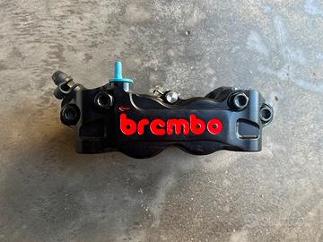 Pinza radiale Brembo P4 CNC 108mm 32/36 con pistoncini in titanio e viti in titanio race speck nere, già fresata e pronta per essere montata.