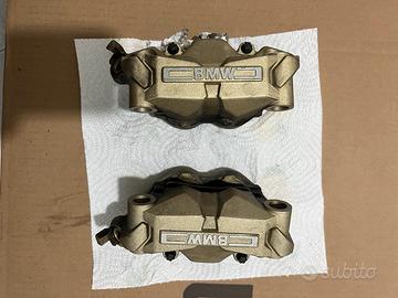 Vendo coppia pinze freno anteriore color oro per BMW GS 1250 compatibili dal 2019 al 2023 e credo anche per i modelli GS 1200 dal 2013 al 2018 ma non sono certissimo, da chiedere in officina la compatibilità. Queste pinze in oggetto sono state smontate dal modello 1250 Hp del 2019. Ovviamente cedo anche le pasticche sinter brembo che vedete montate nelle foto.