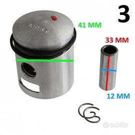 (R.14385) Vendo pistone completo di coppia fasce elastiche tipo Ac-2 con altezza 1,5 mm e coppia seeger con spinotto da 12 x 33 mm nuovo per Benelli Sport 49 cc 2 tempi marca Asso con codice 949 e codice conchiglia stampigliata all'interno del pistone 1093 per cilindro con alesaggio 40 mm e compressione 23 mm con forma testa 432 con lunghezza totale 47 mm e rasamento da 16 mm , il prezzo si intende per singolo pezzo , disponibili più modelli:
