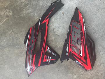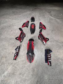 Vendo kit plastiche per Honda CRF 450 2021 2022 2023 2024 con grafiche Holo glitter , più coprisella WD Racing ATTENZIONE: nel kit manca la mascherina Per altre foto più specifiche o info scrivetemi pure