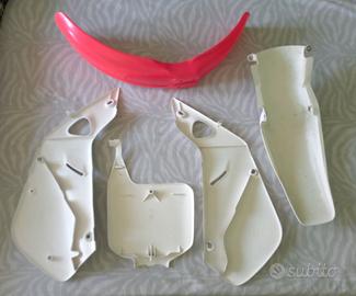 Vendo plastiche per Honda CR 125 R del 1997 e modelli simili. Buonissime condizioni in quanto protette da spesse grafiche rimosse prima dell'annuncio (foto a parte). Unica crepa, presente su parafango posteriore, è evidenziata in foto. Tabella anteriore con dicitura "Italy", ignoro la marca, 10 euro. Tabelle laterali, Acerbis, 10 euro cadauna. Parafango anteriore, UFO, 10 euro. Parafango posteriore, originale Honda, 20 euro. Per acquisto in blocco, tutto a 50 euro + spedizione. Non ho altre plastiche di questa moto. Altre foto su richiesta. Non tratto e non scambio con niente. No contrassegno e no PayPal.