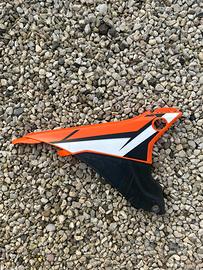 Vendo plastiche originali per KTM EXC 250 del 2014. Le plastiche sono state usate per fare enduro e di conseguenza sono segnate. Il convogliatore sinistro ha una leggera rottura mentre il paramano destro ha un buco (come si vede dalle foto)