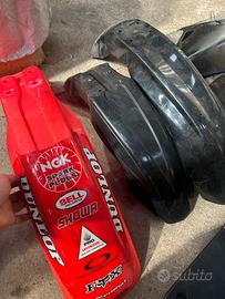 - Sottoconvogliatori Husqvarna WR/CR nuovi - Tabelle posteriori HM/Vent50 - Parafango rosso enduro - Parafango nero enduro - Mascherina faro ONE nera - Mascherina CRF bianca - Parastelo husqvarna SM 125 nero