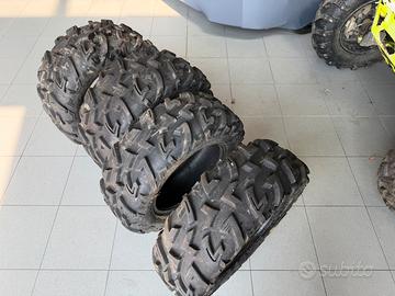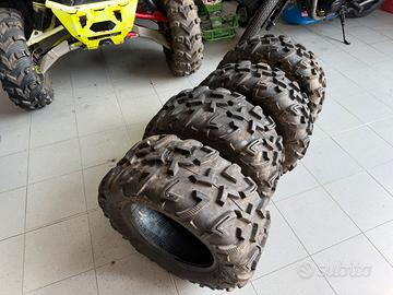Pneumatici ATV /QUAD doppia misura di marca Bulldog Anteriori 26 8 14 Posteriori 26 10 14 Battistrada circa 75%, sono stati riparati in diversi punti che non compromettono l’utilizzo. Probabilmente ritiro a mano.