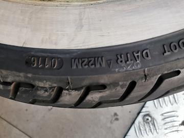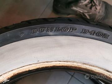 vendo 2 pneumatici DUNLOP MT90B16 con fascia bianca. anteriore 72H D402F e posteriore D402 74H usate ma senza crepe e battistrada al 40\50% sono introvabili. dot 2017 prezzo per entrambe e vendibili in coppia. inclusa camera aria ruota posteriore. posso montarle 50€ o spedirle 25€