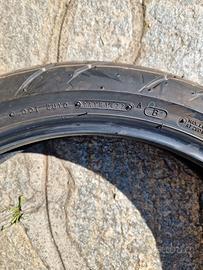 Coppia pneumatici misure:120/70 ZR17 Tubeless; 180/55 ZR17 Tubeless; il DOT e' 4/22. Hanno 222 km, smontati da una Z900RS tenuta in garage su cavalletti. Le gomme sono praticamente nuove, hanno ancora la striscia colorata, la moto era in fase di rodaggio, quindi guidata a basda velocita'. Per guida tranquilla, senza eccessi, sono ottime.
