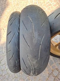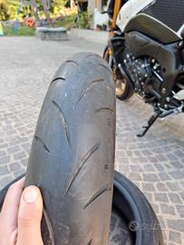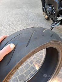 COPPIA PNEUMATICI MOTO BRIDGESTONE S21R HYPERSPORT, ANNO 2020, MISURE 180/55 R17 73W + 120/70 R17 58W, POSTERIORE CON ANCORA CIRCA 4000KM DI AUTONOMIA, ANTERIORE BUONA. IDEALI PER FARCI UNA STAGIONE SENZA TROPPE PRETESE.