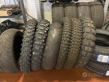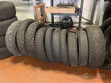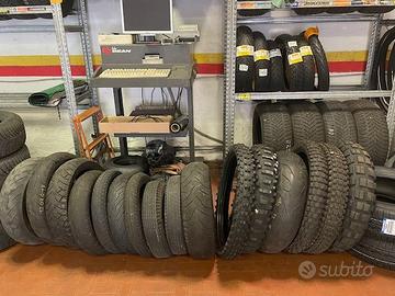 Autofficina vende vari pneumatici usati per moto e scooter tenuti in buone condizioni.
