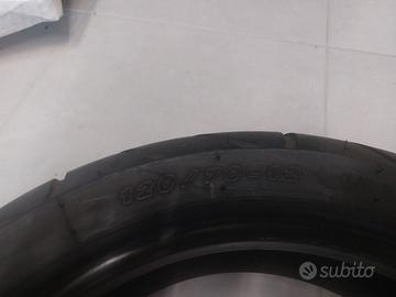 Gomme Michelin misure 120.70.12 e 130.70.12 condizioni come da foto. Integre,senza tagli o danneggiamenti.