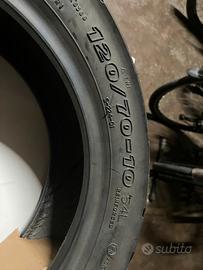 Pneumatico nuovo scooter misura 120/70-10 54L in perfette condizioni, mai istallato o utilizzato, disegno sportivo, spalla di grande appoggio, ottimo grip, vendo a prezzo scontato.