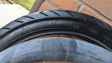 vendo per errato acquisto (avevo preso un kit pensando fossero 2 pneumatici identici all'arrivo mi sono accorto che il posteriore era maggiorato e non adatto al mio mezzo), quindi vendo a prezzo di realizzo pneumatico e camera d'aria misure 2 3\4 R17 che corrisponde ad un 80\90 R17 . montano su ciclomotori ... la camera d'aria è dedicata al cerchio da 17 e al pneumatico. prediligo consegna a mano ma posso anche spedire... pneumatico freschi prodotti a fine 2023. come saprete Michelin non produce più il mitico M29S e ora lo produce (sotto licenza Michele da quanto ho letto) la service tyres, ditta Indiana che replica tanti pneumatici anche per moto d'epoca. Se avete domande contattatemi...