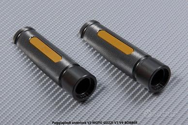 Interamente in alluminio CNC 6061 intagliato nella massa e anodizzato, vengono consegnati in coppia, o individualmente, e si montano senza modifiche direttamente in sostituzione dei vecchi poggiapiedi.