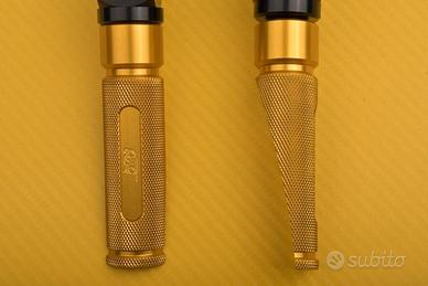 Interamente in alluminio CNC 6061 intagliato nella massa e anodizzato, vengono consegnati in coppia, o individualmente, e si montano senza modifiche direttamente in sostituzione dei vecchi poggiapiedi.
