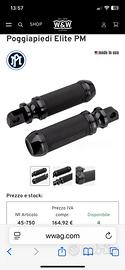 Poggiapiedi passeggero performance machine modello elite in alluminio anodizzati neri. Montati 6 mesi sulla moto ( sportster). Passeggero salito sulla moto una sola volta:).