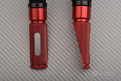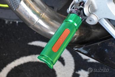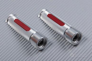 Interamente in alluminio CNC 6061 intagliato nella massa e anodizzato, vengono consegnati in coppia, o individualmente, e si montano senza modifiche direttamente in sostituzione dei vecchi poggiapiedi.