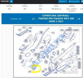 cod. 6568230090 POGGIAPIEDI SINISTRO PER PIAGGIO MP3 400 HPE 2021, come nuovo.