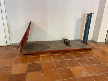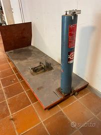Attrezzatura professionale da officina, struttura robusta con rampa di accesso e colonna di sollevamento.