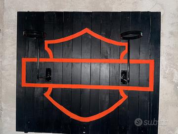 Vendo porta casco fatto artigianalmente con logo Harley Davidson intagliato bello veramente io lo tenevo in casa. Ritiro a mano no spedizione