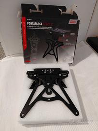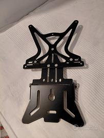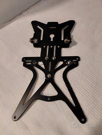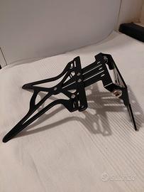 Porta targa AeroX. Altezza e inclinazione regolabili. Elevata compatibilità grazie ampie asole di fissaggio. Alluminio e inox. Mai usato.