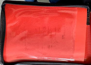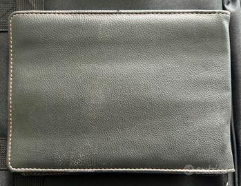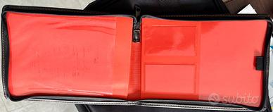 Portadocumenti ufficiale Harley Owners Group (H.O.G.) Realizzato in simil pelle nera con cuciture a contrasto arancioni. Presenta il logo HOG con l'aquila impresso a caldo nell'angolo in basso a destra e il logo Harley Davidson a sinistra. chiusura a zip. Come si vede dalla foto, una delle parti interne risulta leggermente rovinata.