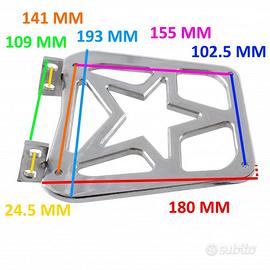 (R.14279) Vendo portapacchi posteriore usato in ferro cromato per moto custom varie con misure 180 x 193 mm e distanza staffe fissaggio 109 mm , per misure vedere foto